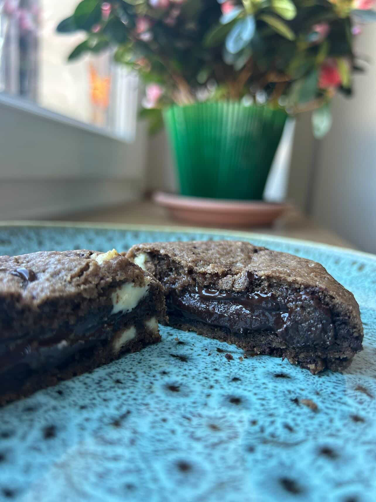 Un cookie intensément chocolaté aux trois chocolats, croustillant à l’extérieur et incroyablement fondant au cœur.