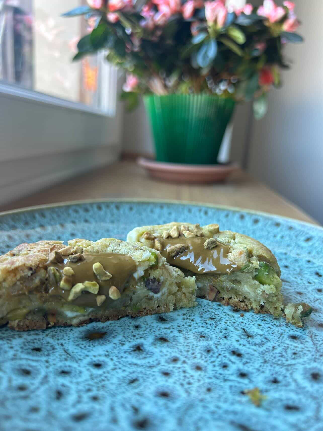 🌿 Le cookie pistache chocolat blanc cœur fondant
